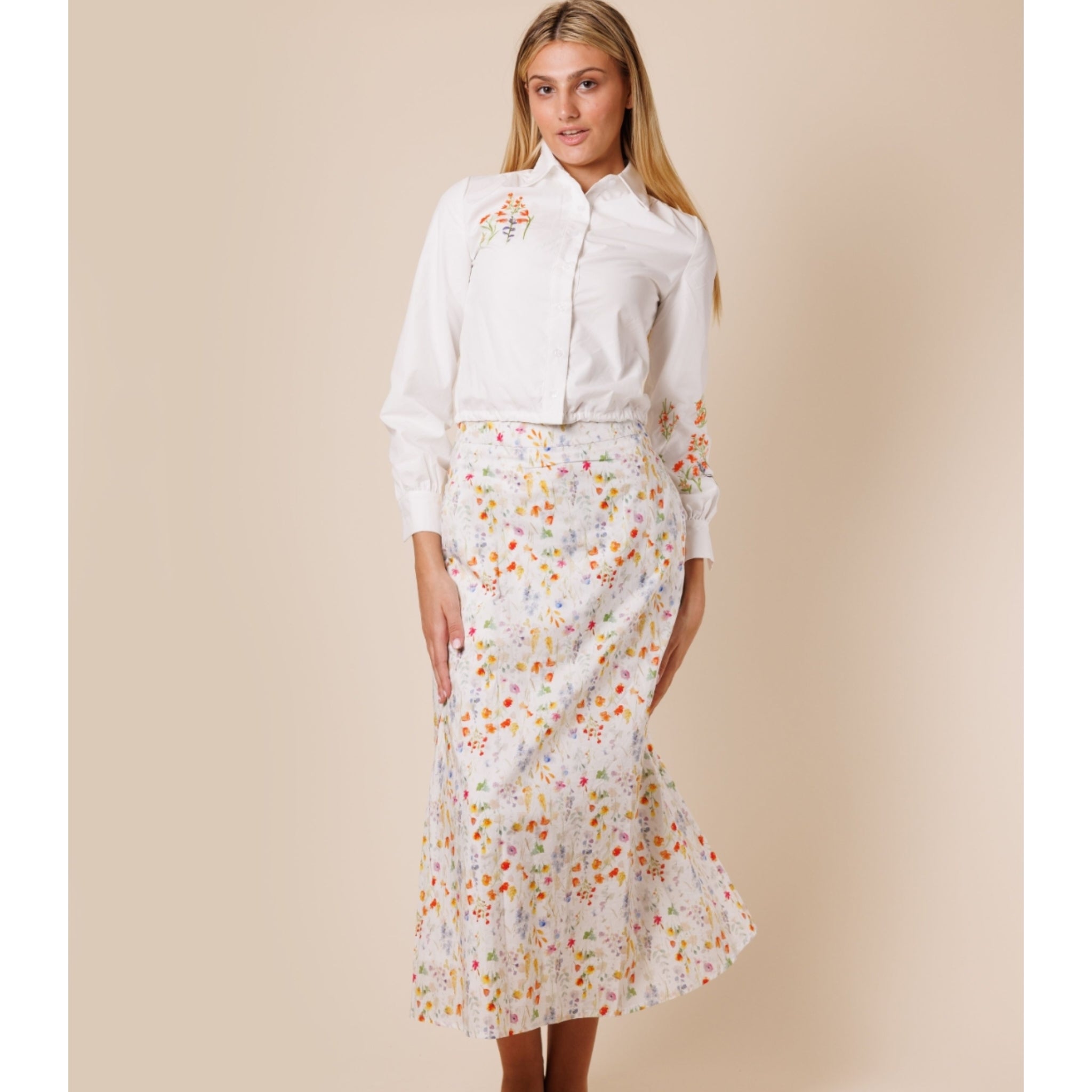 Pretty flower printed skirt. Stretchy elastic waist. Side zip Lined.