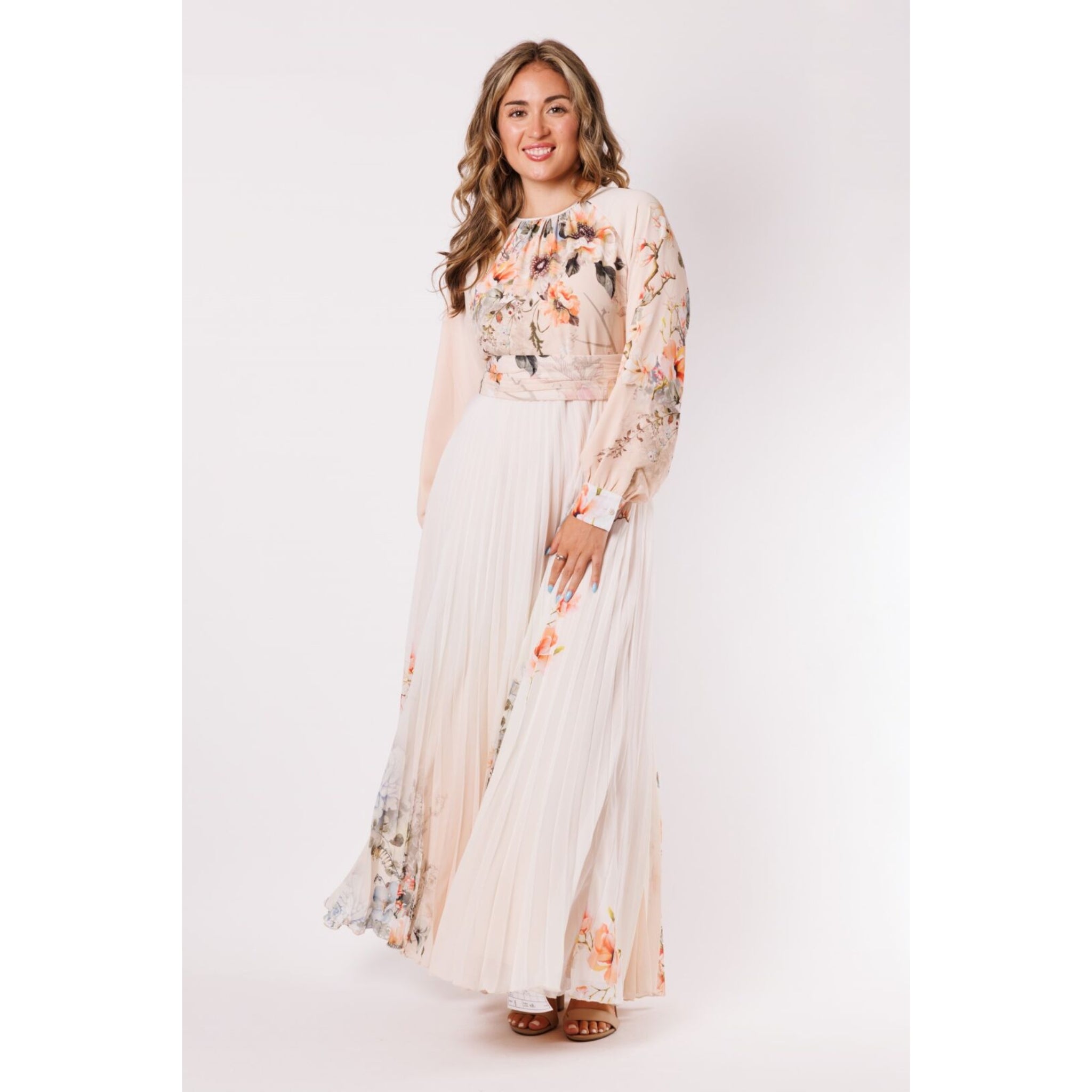 Chiffon Cream Peachy Floral Dress - The Mimi Boutique