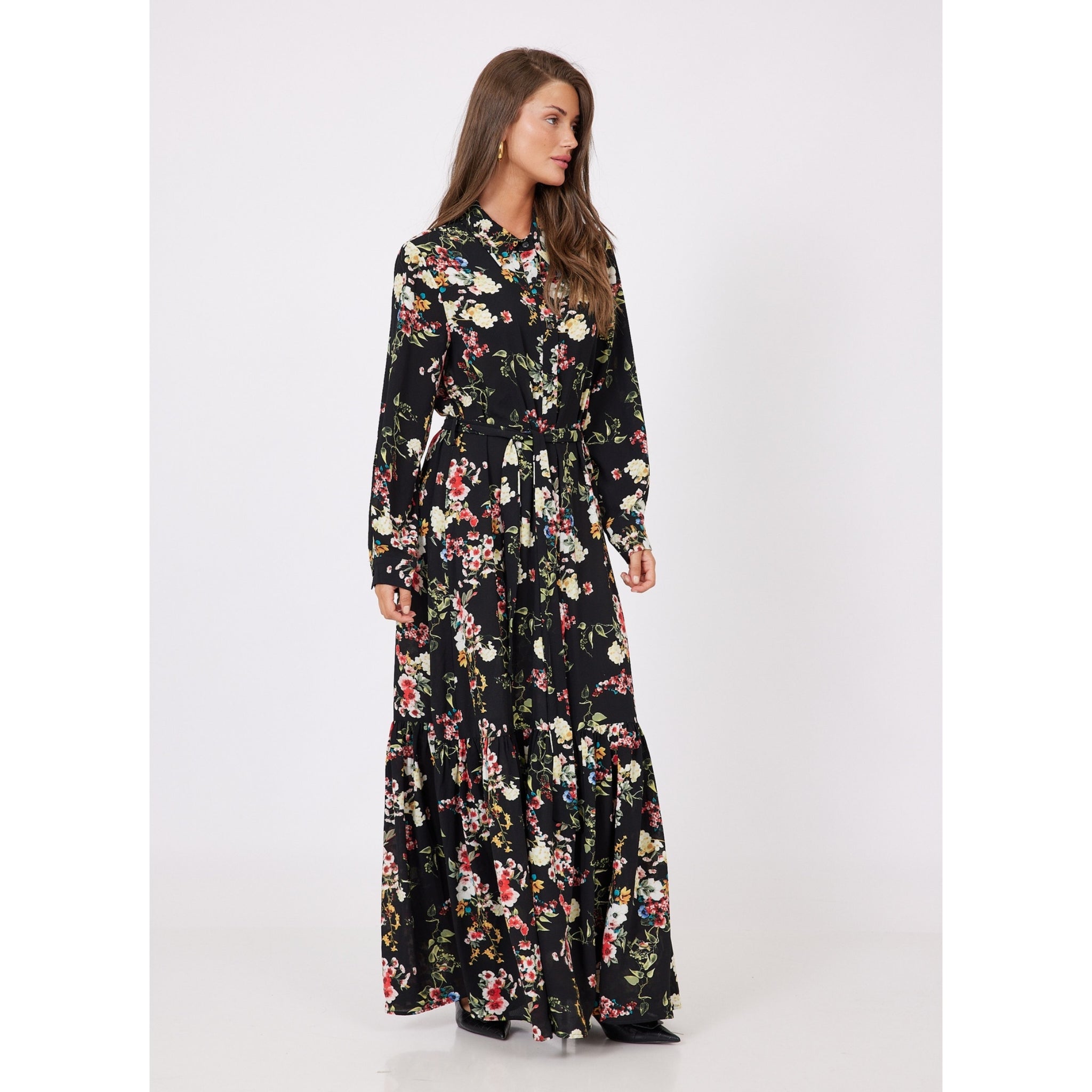 Super easy mesh maxi dress. No waist. Stretchy. Ruffle bottom. Long sleeves