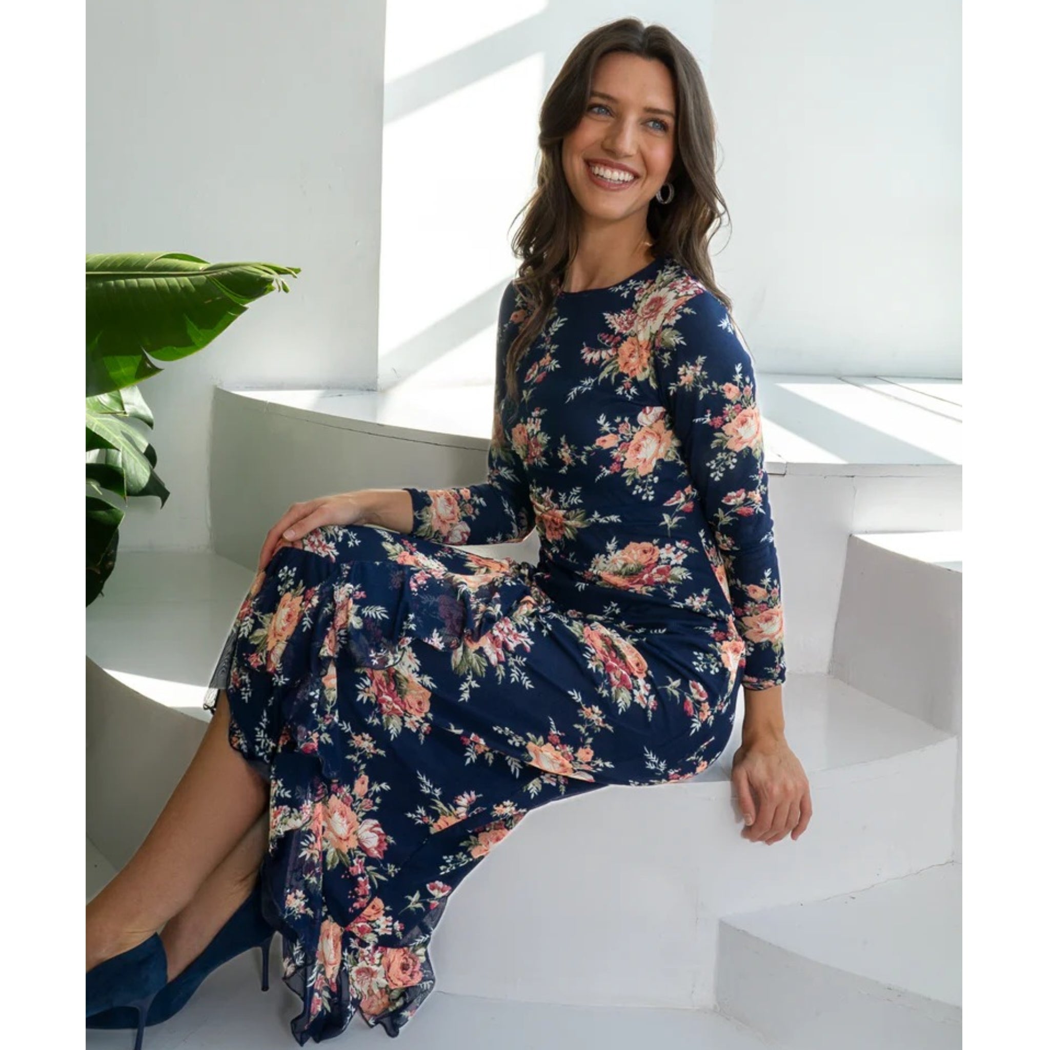 Fabulous and dressy slip on side ruched midi maxi dress. Long sleeve, very stretchy and fully lined. All season