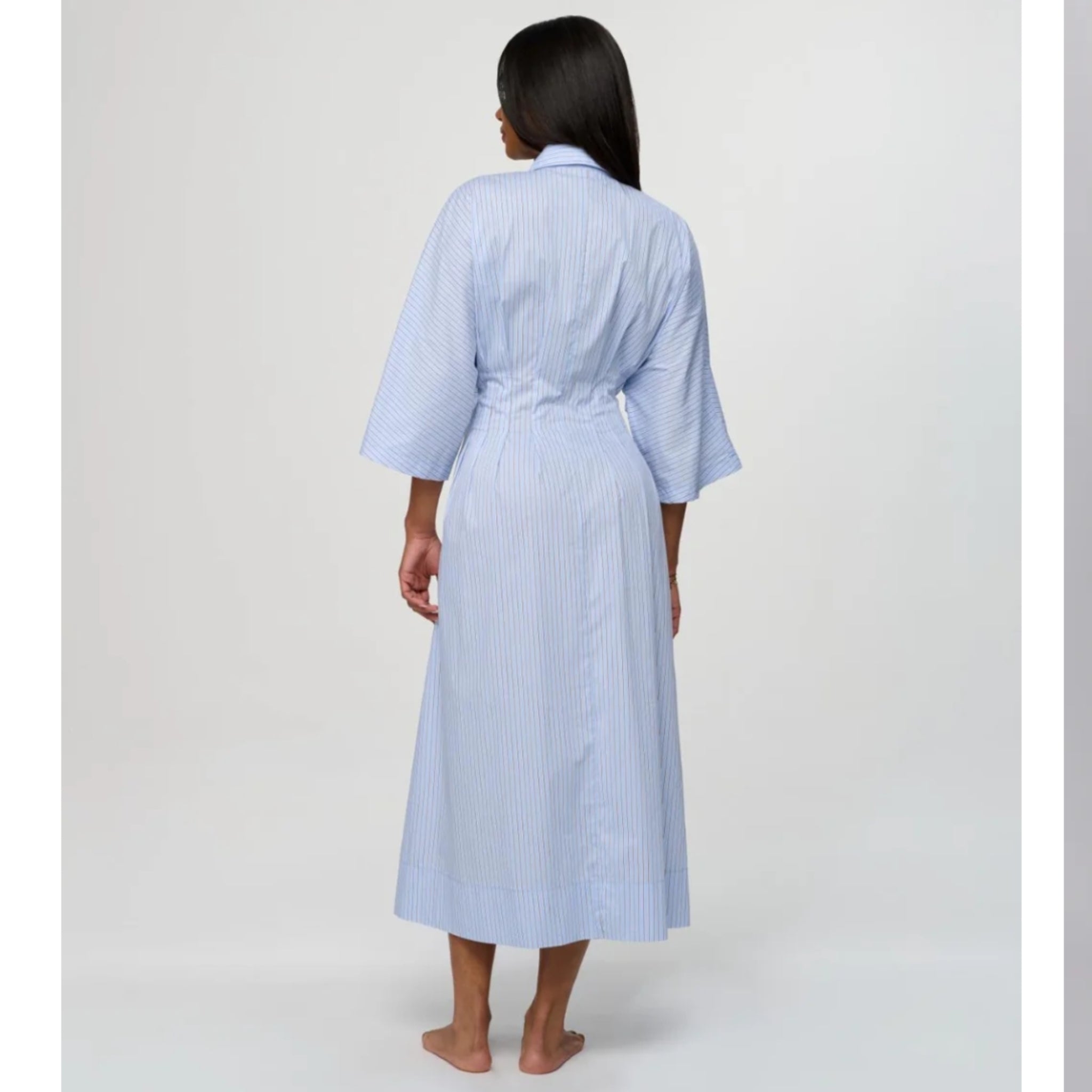 The Liana Dress is a cotton shirt dress with thin stripes and functional buttons all the way down the front. It’s designed with a flattering, gently cinched waist that gives shape while still feeling comfortable and easy to wear. This is one of those effortless pieces you can throw on and instantly feel put together. By Tess