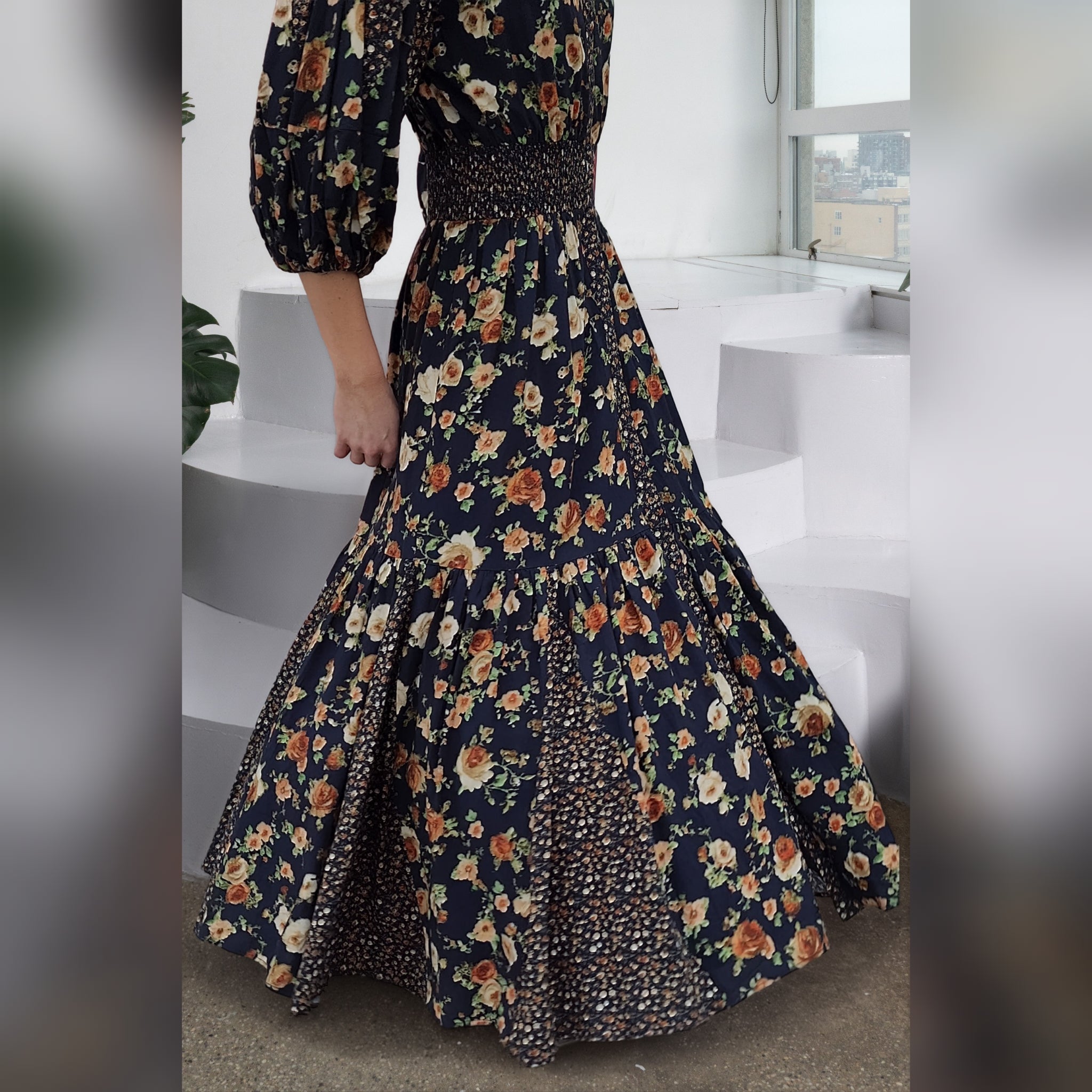 Lightweight breathable maxi dress with buttons. Nursing friendly. Collar. 3/4 puff sleeves. Lining.