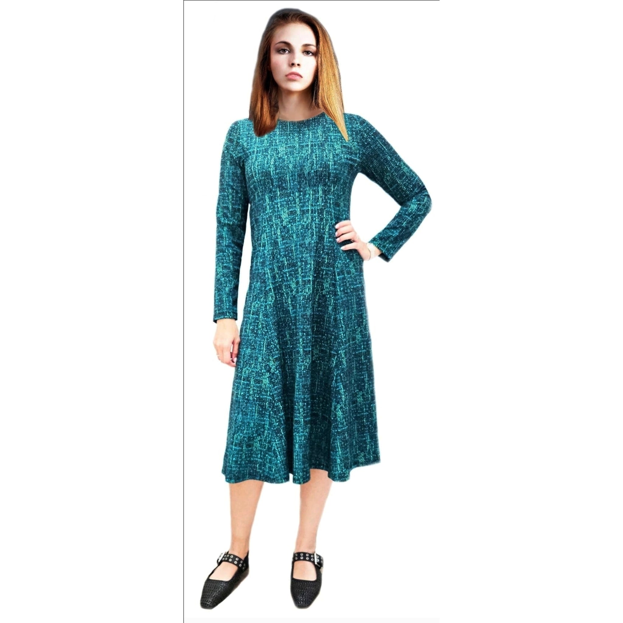 Green printed long sleeve dress No waist, flattering slip on dress. Unlined