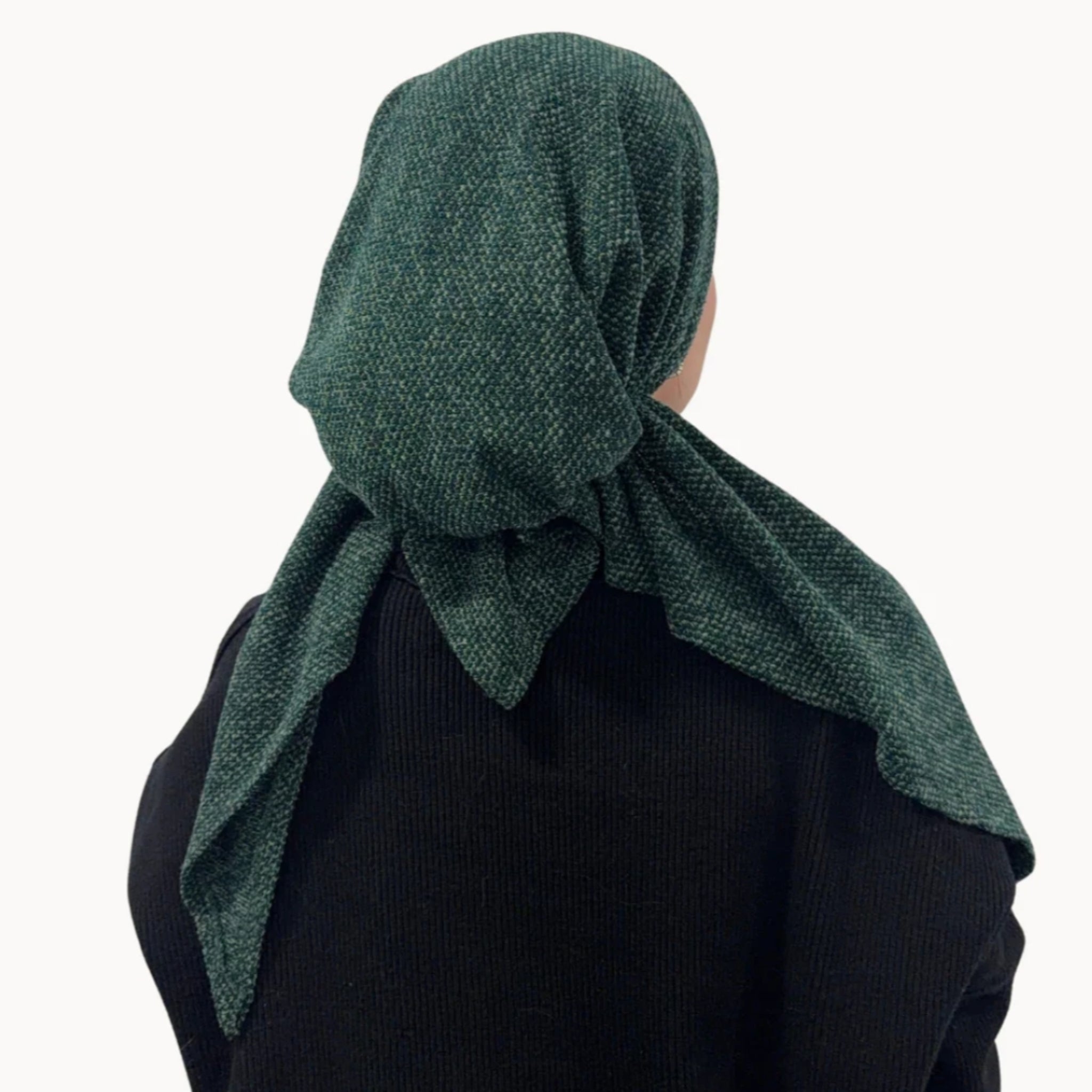 This scarf is made of a cozy and super soft green tweed fabric. Perfect for chilly days, it will keep you comfortably warm while adding a fashionable touch to any outfit.