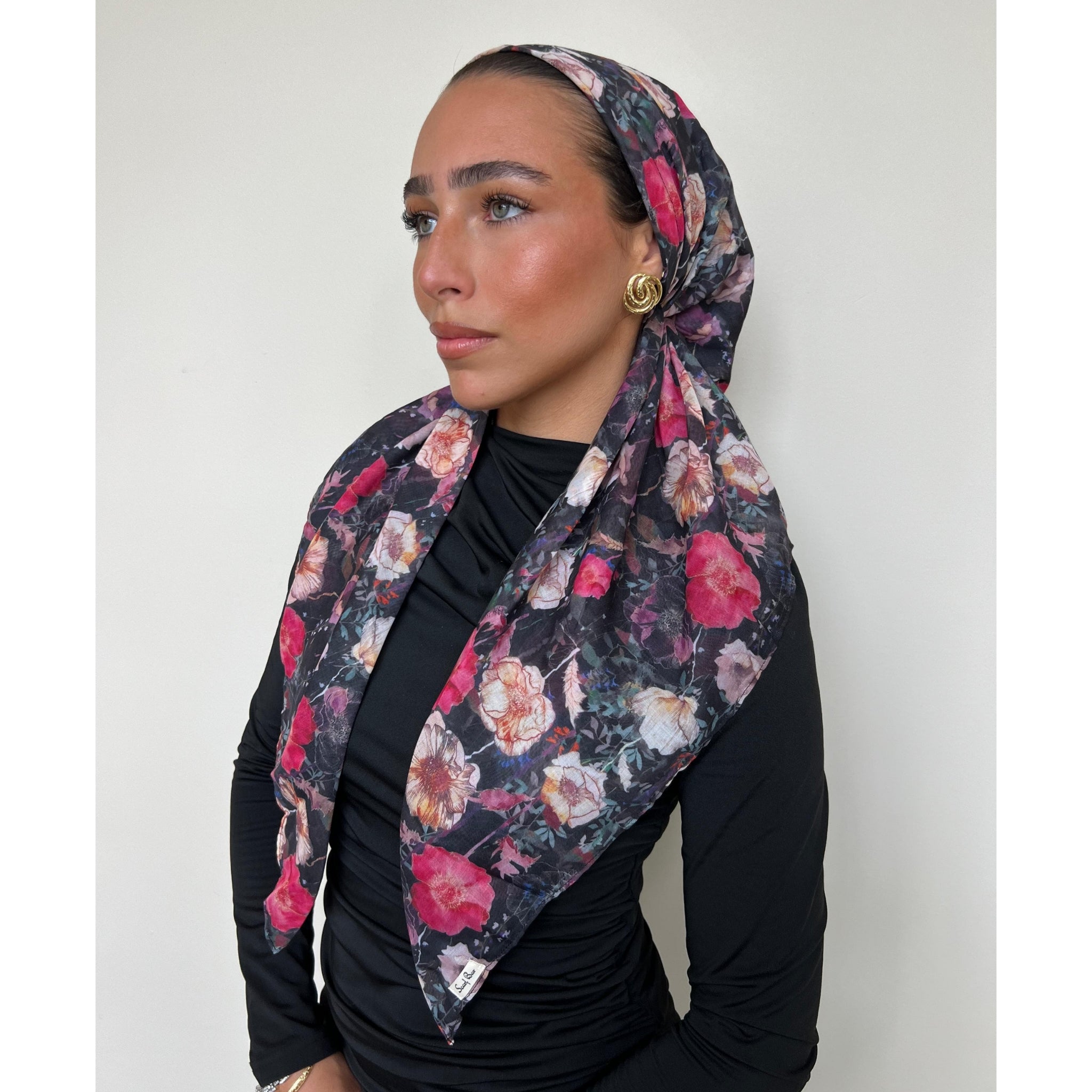 Beautiful headscarves from the Scarf Bar. Pre-tied has a nonslip fabric piece in the front inside. Tie tails for added fit. Kerchief versatile pretied has open back triangle.