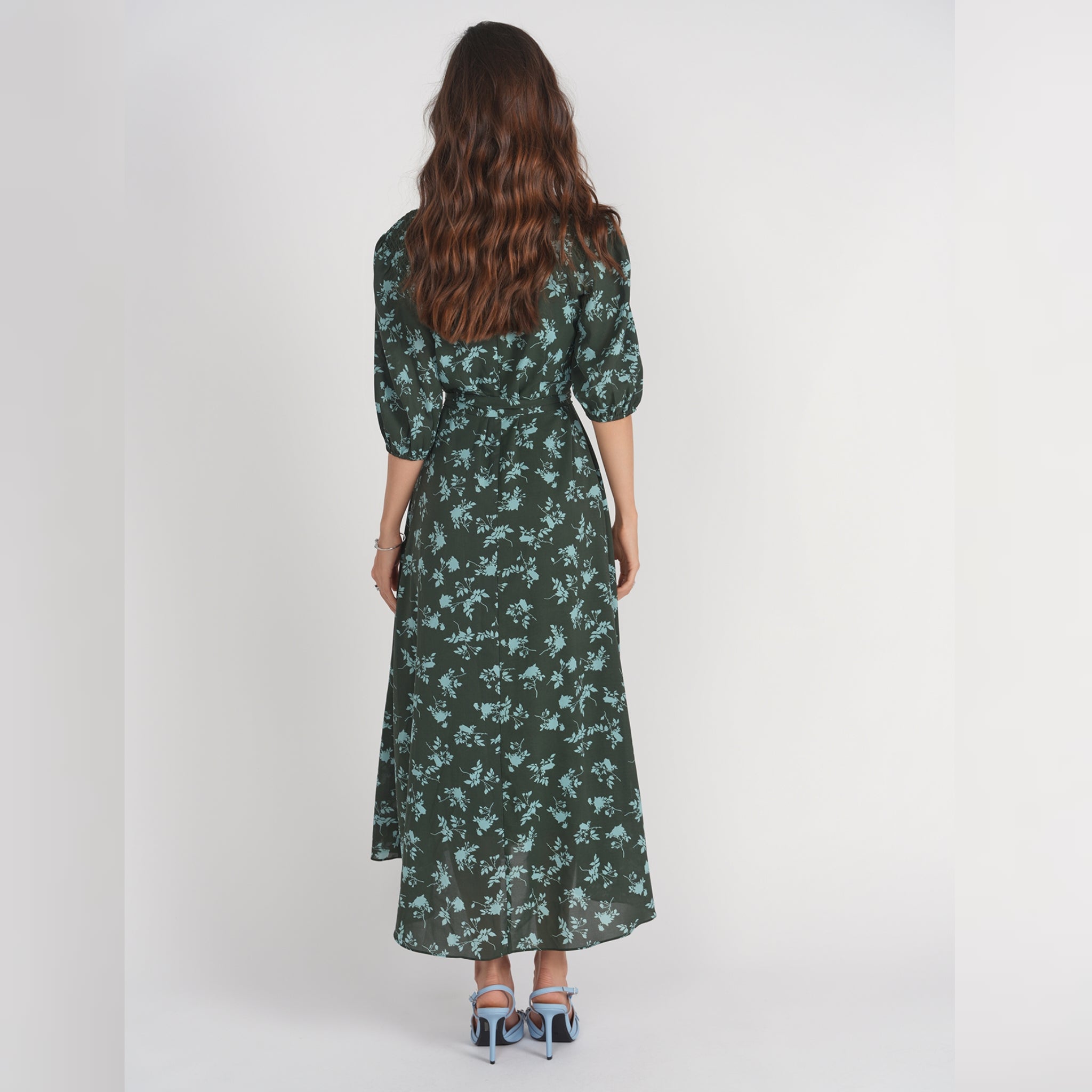• Smocked Shoulder Dress Green Floral