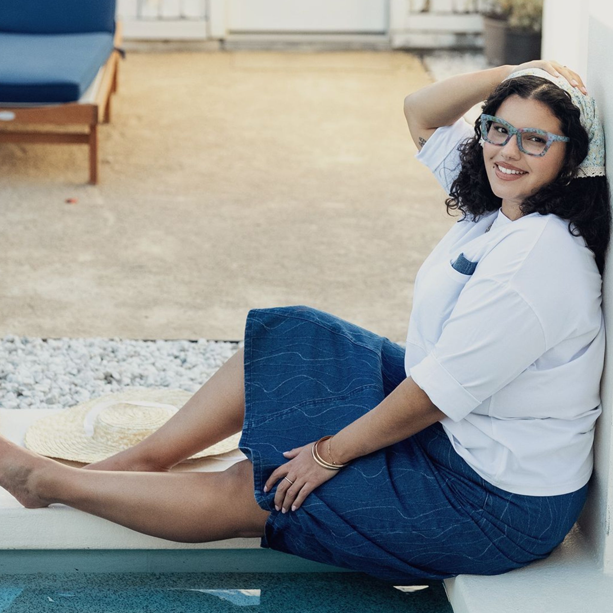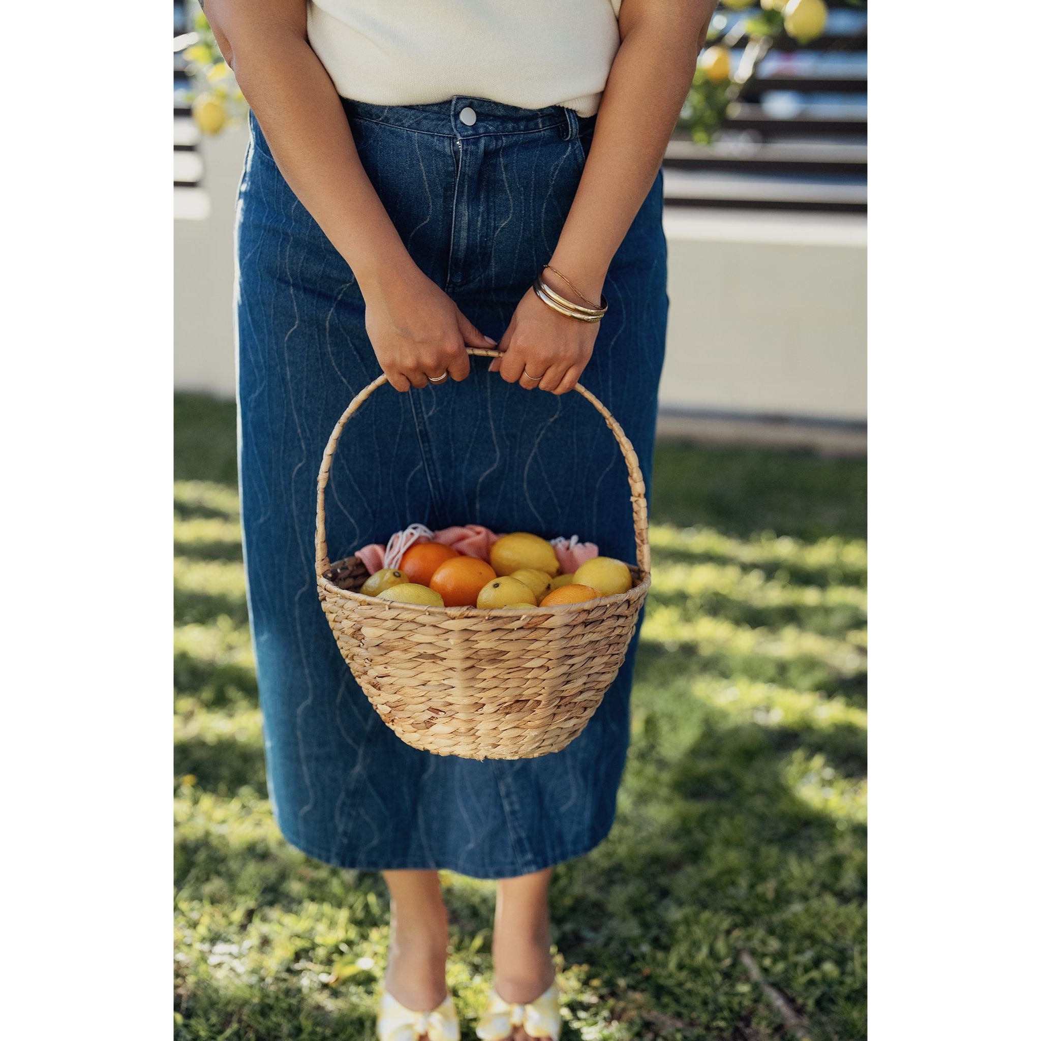 Cute textured denim skirt. This flattering plus size denim maxi skirt is designed with front pockets only, a modest slit-free silhouette, and effortless, easy styling. Pair with t-shirts for the perfect summer look.