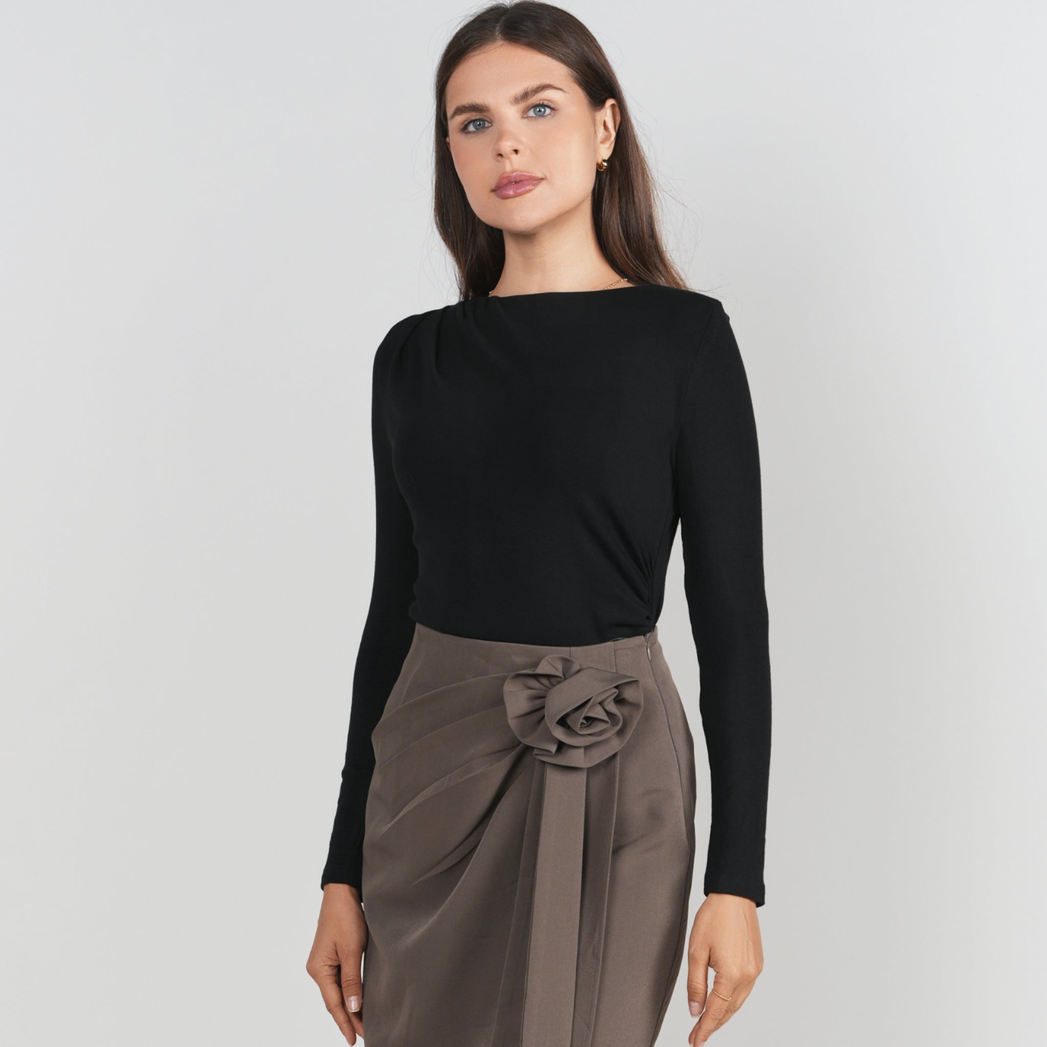 Side ruched top. Really soft fabric , can be dressed up or down. Available in two colors.