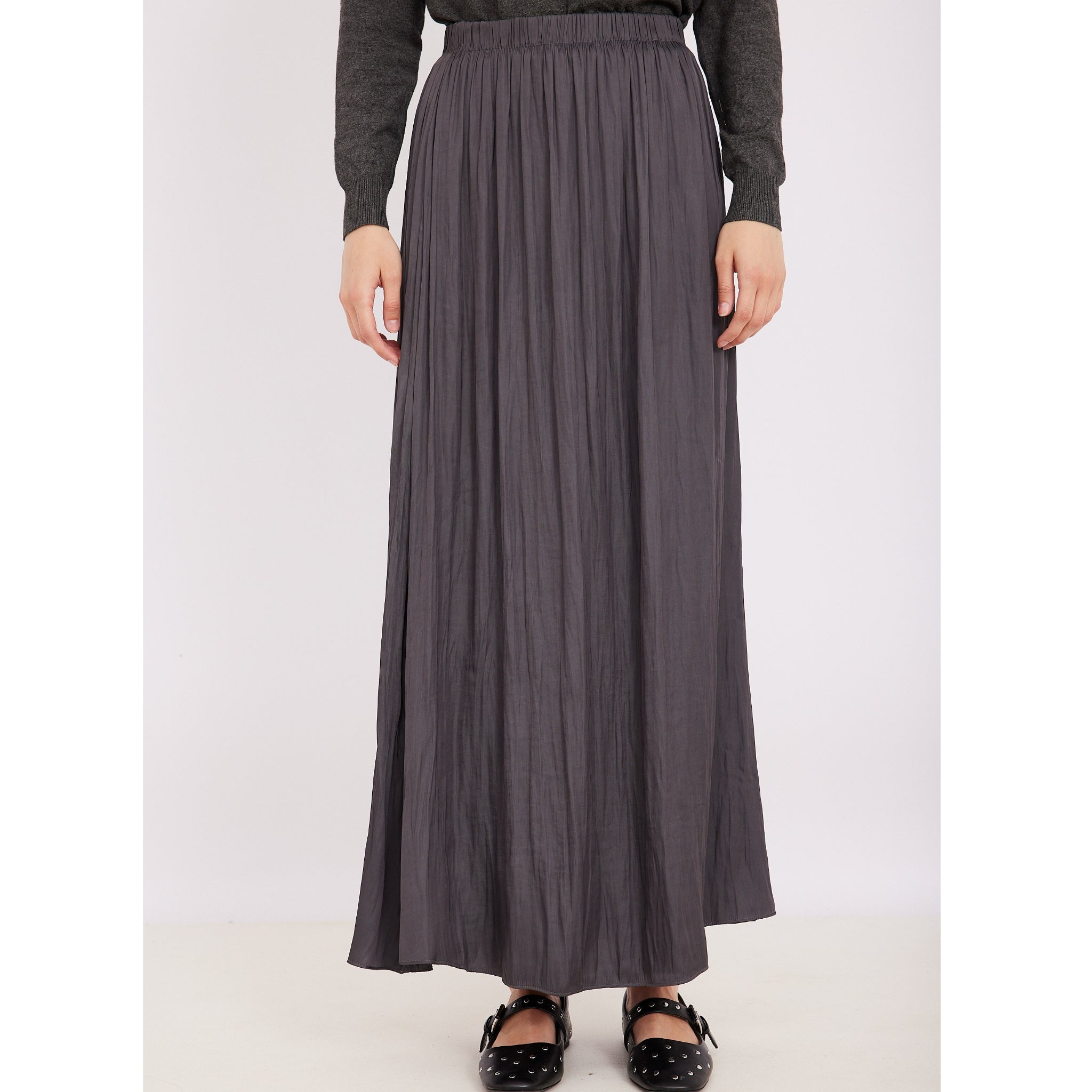 Elastic waist band. Lined. Maxi length. Satin feel.
